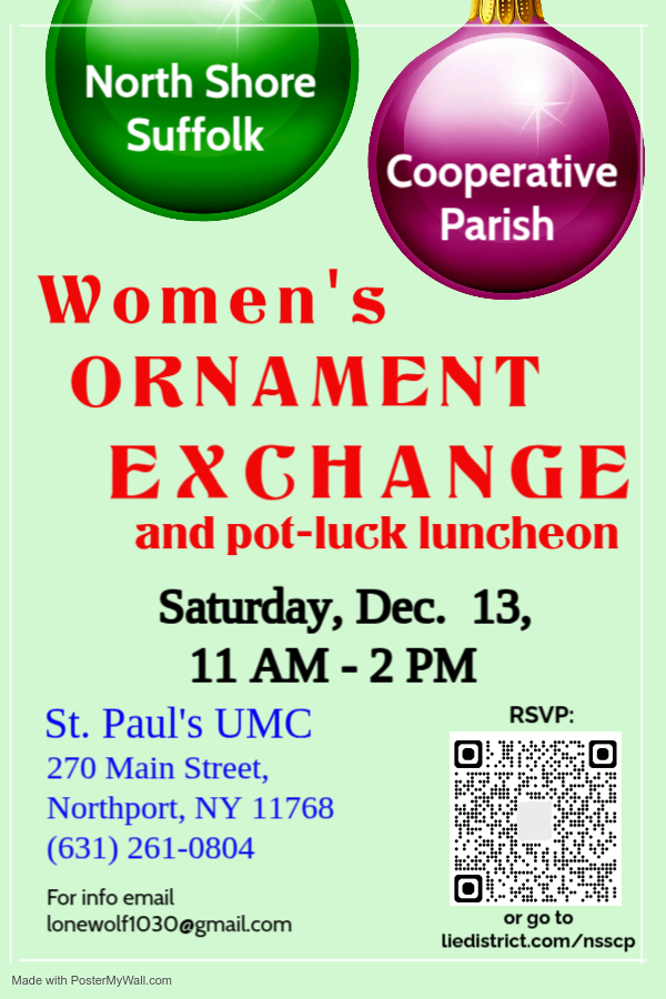 Saturday, Dec. 13, 11 am - 2 pm, St. Paul's UMC, Northport,