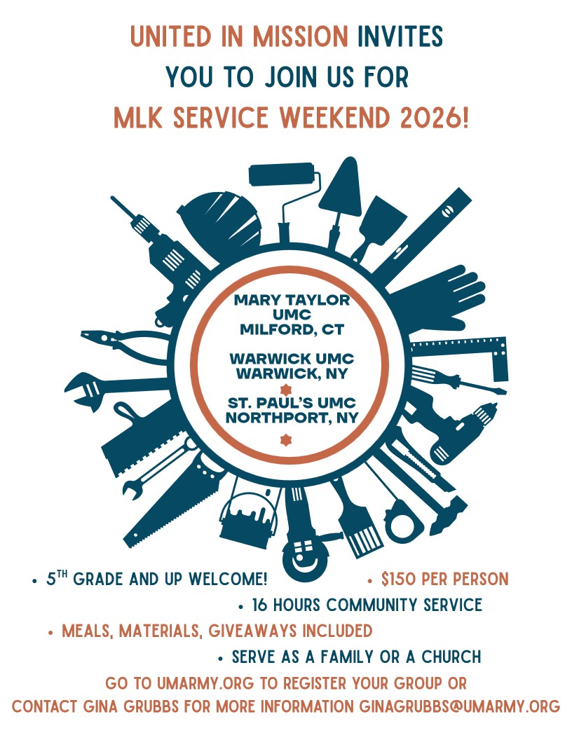 Weekly Prayer Team via Zoom on Sundays 7pm, led by St Paul's. Contact: david.czeisel@nyac-umc.com